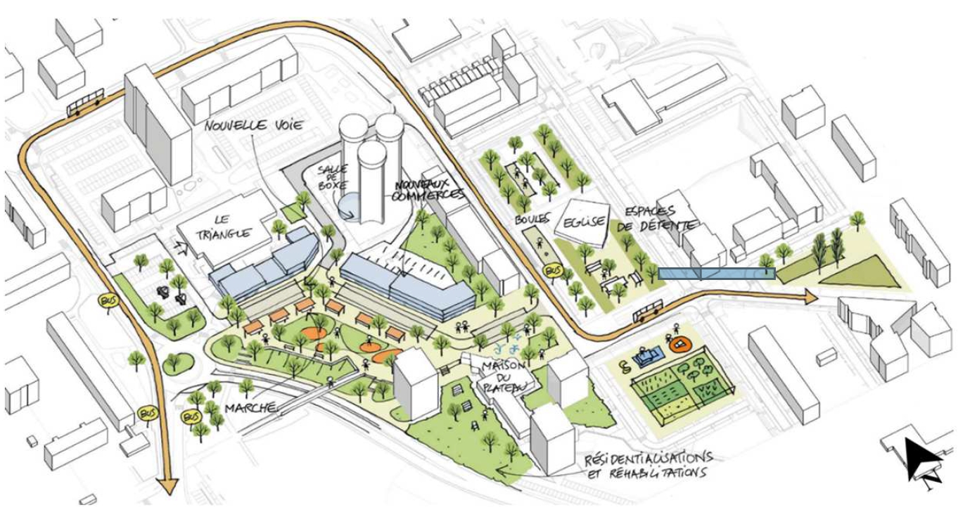 Conduit par Rouen Habitat dans le cadre du renouvellement urbain (NPNRU), ce chantier permet aujourd’hui de révéler le cœur du quartier, en libérant des espaces et en redonnant de l’ouverture à cette place de vie.